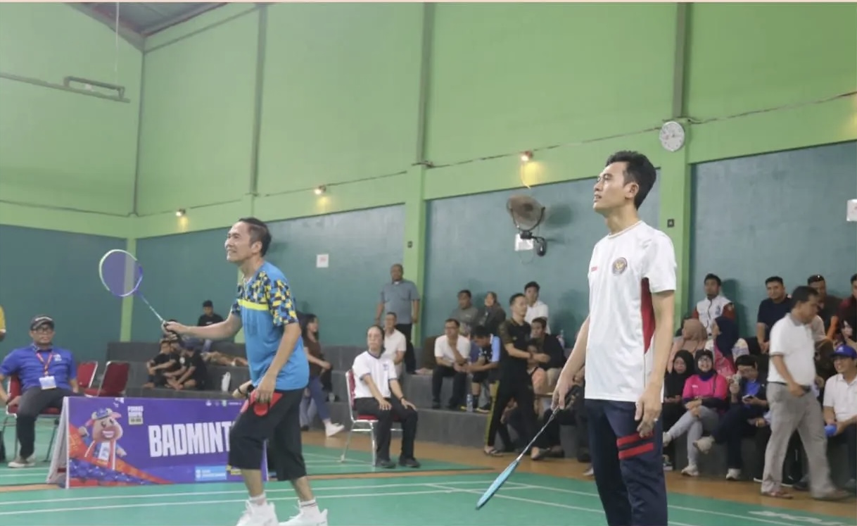 kekuatan Wali Kota Palembang dalam pertandingan bulu tangkis persahabatan. Aksi adu smash dan rally ini berlangsung sebagai bagian dari rangkaian acara silaturahmi di sela-sela agenda Korpri.