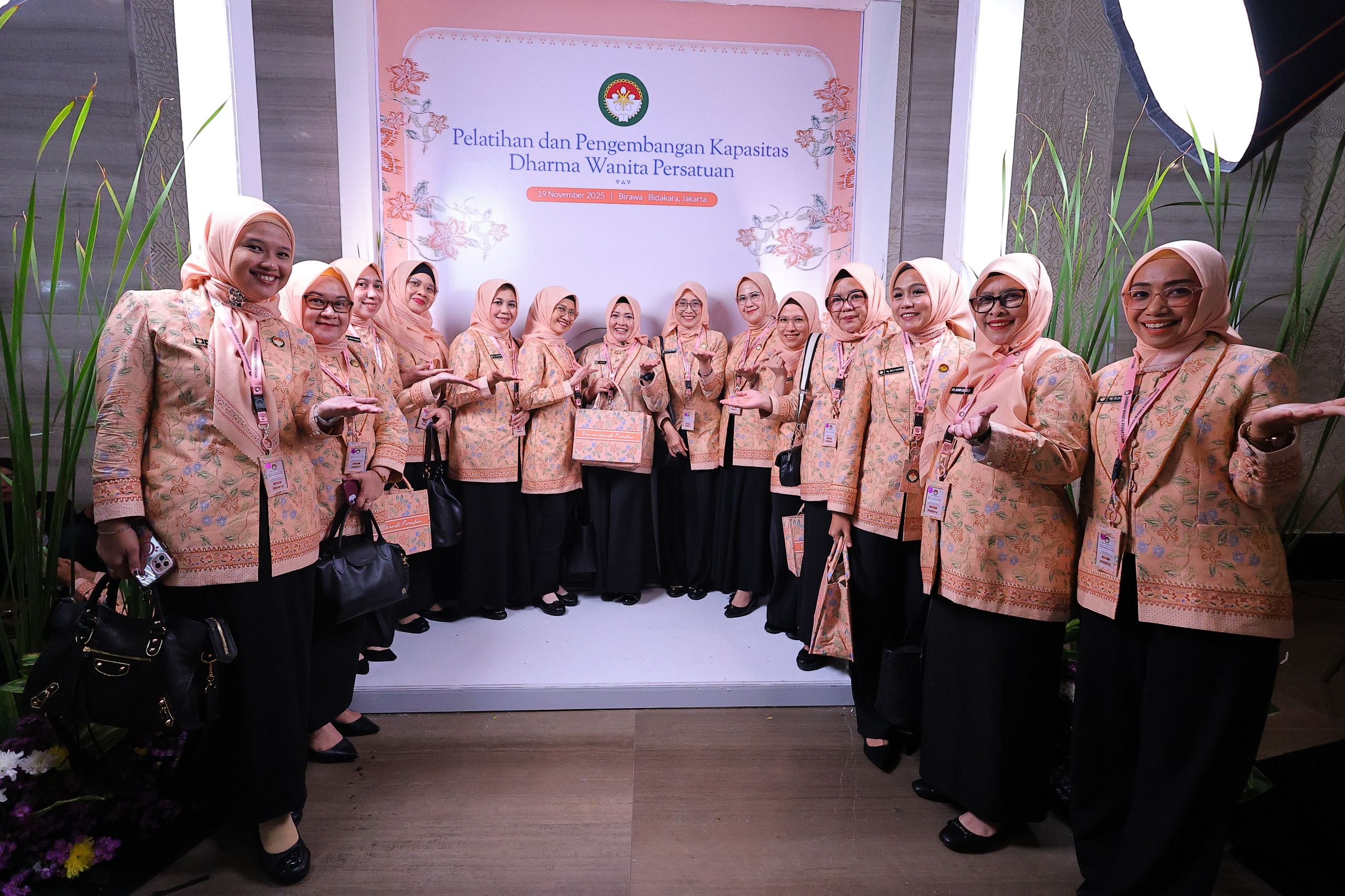 SUMSELKITA.COM – Ketua Dharma Wanita Persatuan (DWP) Kota Palembang Ida Royani Aprizal, bersama pengurus menghadiri Pelatihan dan Pengembangan Kapasitas DWP se-Indonesia di Hotel Bidakara, Jakarta, Rabu (19/11/2025).