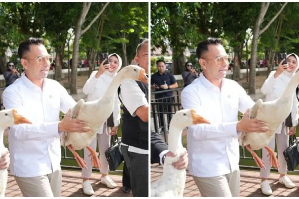 SUMSELKITA.COM,PALEMBANG– Kajati Sumatera Selatan, Dr. Ketut Sumedana, bersama utusan Presiden RI Bidang Pembinaan Generasi Muda dan Pekerja Seni, Raffi Ahmad, melepas puluhan ikan koi dan beberapa angsa di Kambang Iwak, Palembang, Kamis (20/11/2025) pagi. Kegiatan ini dilakukan untuk menjaga keseimbangan alam sekaligus mempercantik taman kota.