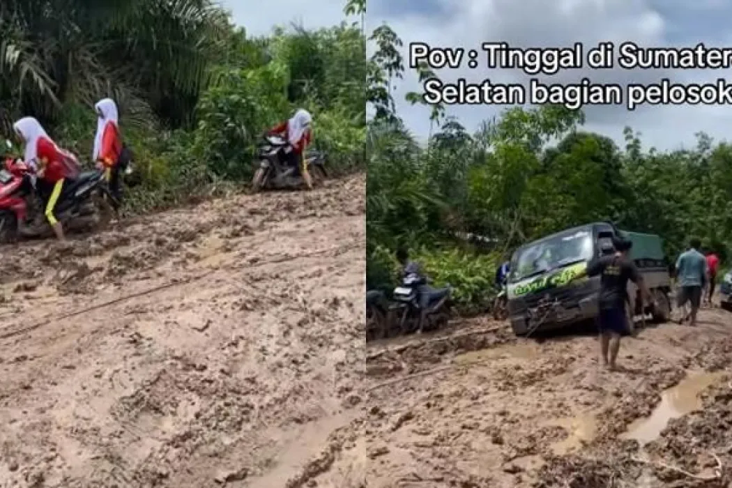 Kondisi jalan berlumpur itu pun menjadi perhatian warganet.