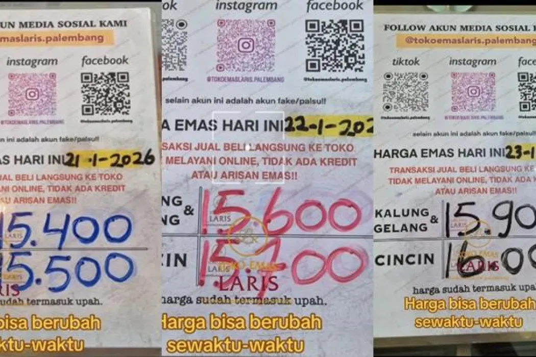 Mengutip data terbaru dari akun Instagram resmi @tokoemaslaris.palembang, tren kenaikan emas perhiasan di Palembang menunjukkan grafik yang terus menanjak tajam sejak awal pekan.
