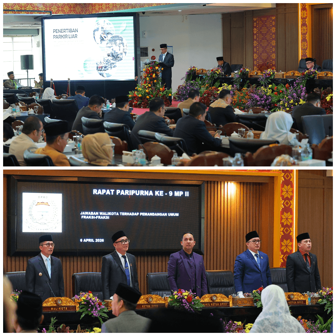 SUMSELKITA.COM,PALEMBANG-Wali Kota Palembang Ratu Dewa menyampaikan jawaban atas pemandangan umum fraksi-fraksi DPRD terhadap Laporan Keterangan Pertanggungjawaban (LKPJ) Tahun Anggaran 2025 dalam Rapat Paripurna ke-9 Masa Persidangan II Tahun 2026, di Ruang Rapat DPRD Kota Palembang, Senin (6/4/2026).