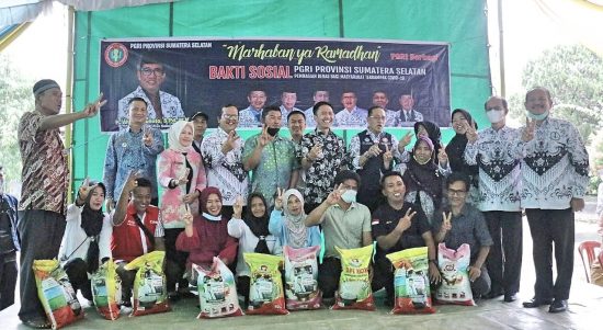 Sekda Ratu Dewa Serahkan Beras dari PGRI Sumsel ke Wali Murid